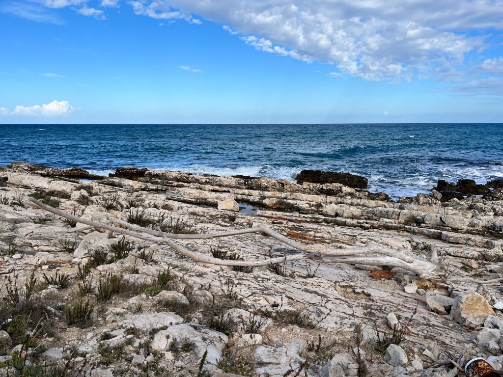 Back over the freeway and returning to the coast where we had hoped to find something open for a light lunch. Nothing is open – two local older men having a sit in the sun and a chat by the sea tell me that there are no bars, no restaurants open until Polignano a Mare. They are only open in this area in the summer.