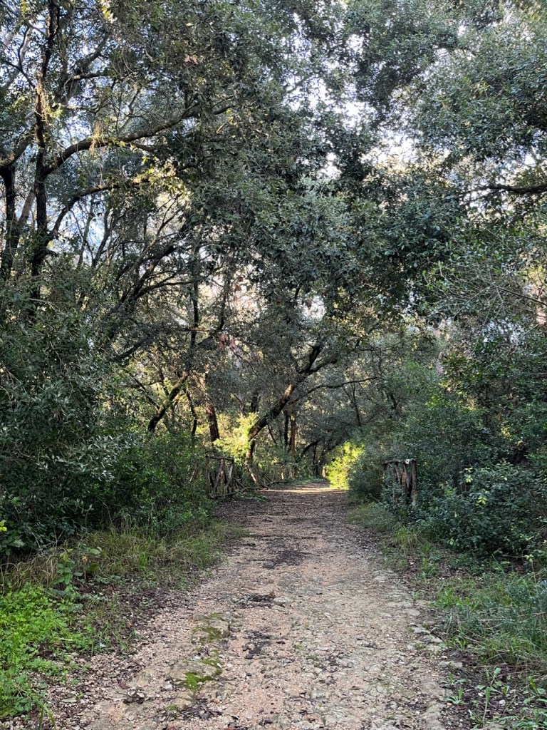 We reach the Cerano woods and our lunch stop after following the canal that is lined first by reeds then by eucalypts. Through the woods we follow a beautiful path under the oak trees, emerging to the masseria (farm house).