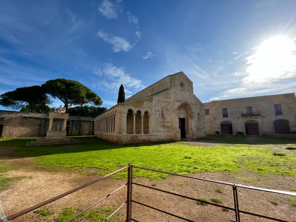 The trail continues inland, along quiet roads and easy trails – past the ruins of the Abbey of San Nicola di Casole, large estates and farms, and olive trees.
