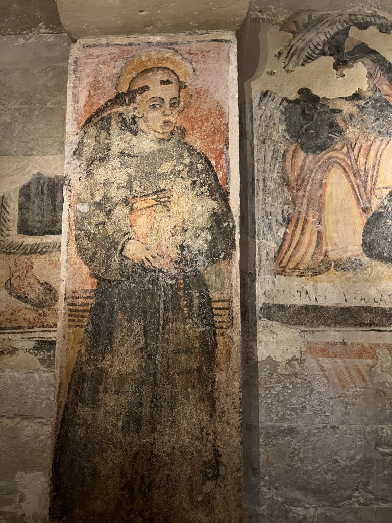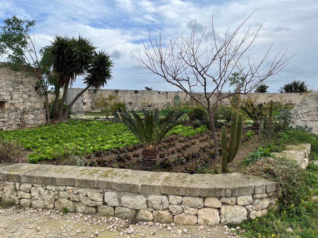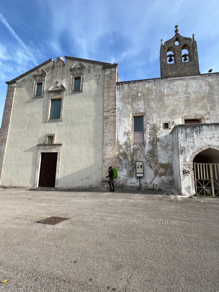 A couple of hours in we arrive at the Abbey of Santa Maria di Cerrate.  We take a seat outside to eat our lunch.  I enquired about entry; she described an extensive complex, covering the history as a farmhouse and as a monastery, but at €8.50 each to enter we decide not to visit; we would have needed an earlier start to take full advantage of the complex, and it wasn’t possible to just visit the frescoes, nor was there a pilgrim discount. We did however get a stamp!