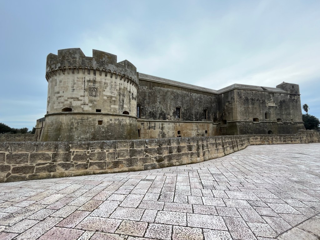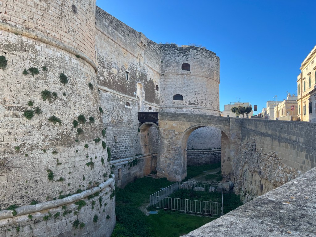 We leave Lecce past the amphitheatre and out along the walls of the castle.