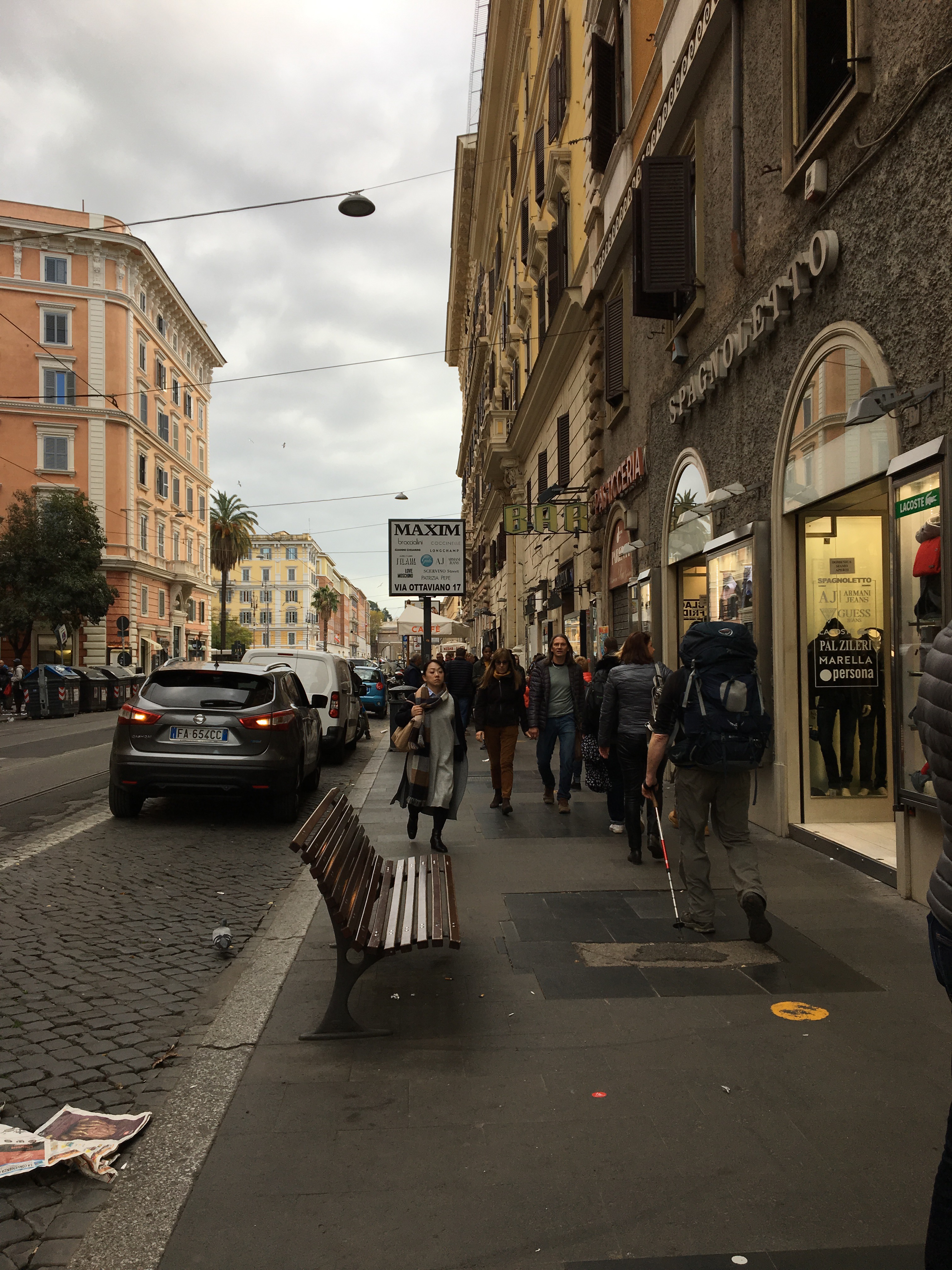 We leave early for us: 7:55 am. We have a slog of 6.5 kms along the dreaded via Cassia. But this morning is safe. It isn’t pleasant but it is safe. Need to do some crisscrossing but there is footpath on one side or the other. It is Sunday morning so maybe the traffic is even a bit quieter. Lots of MAMLs out and about. And so much rubbish and dog shit.
