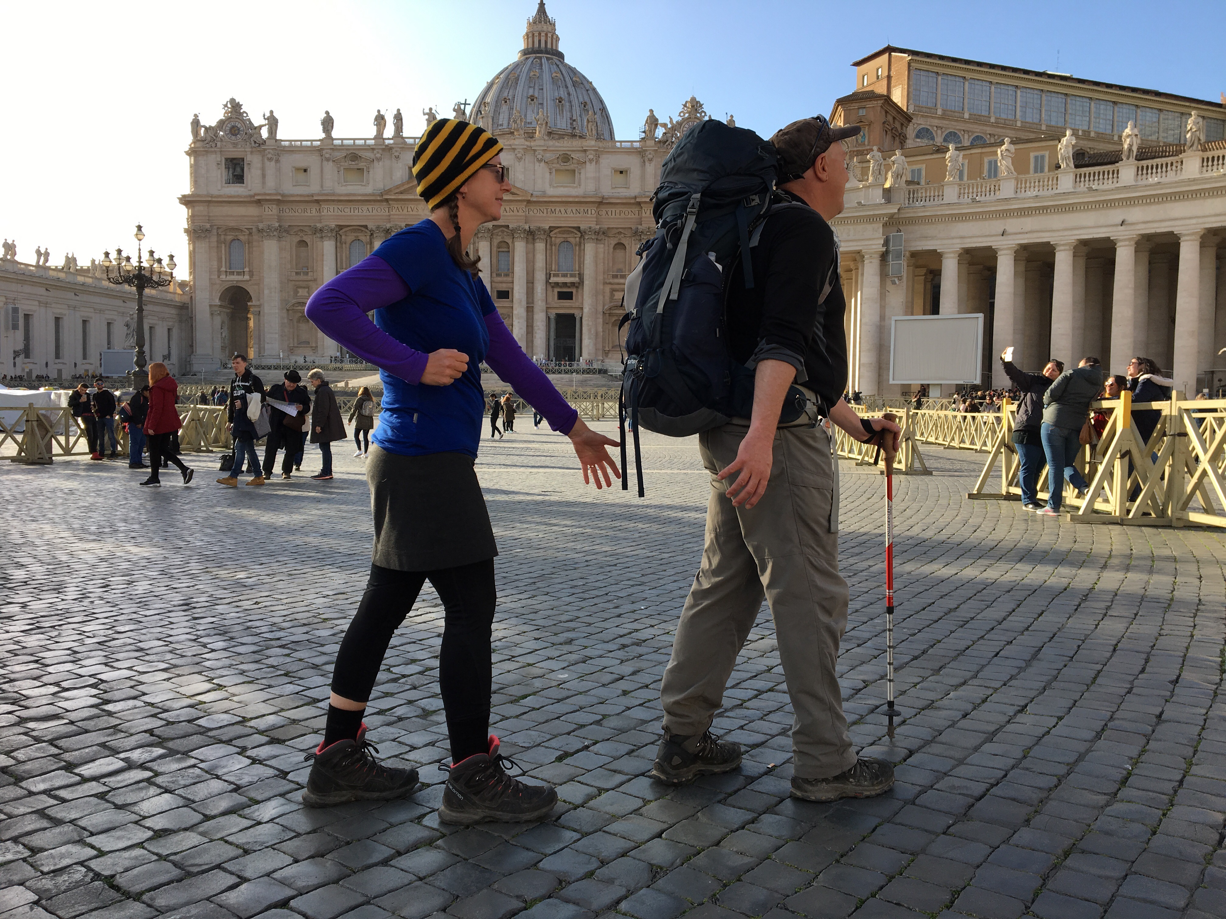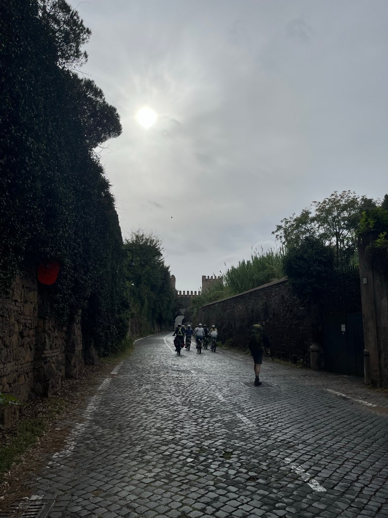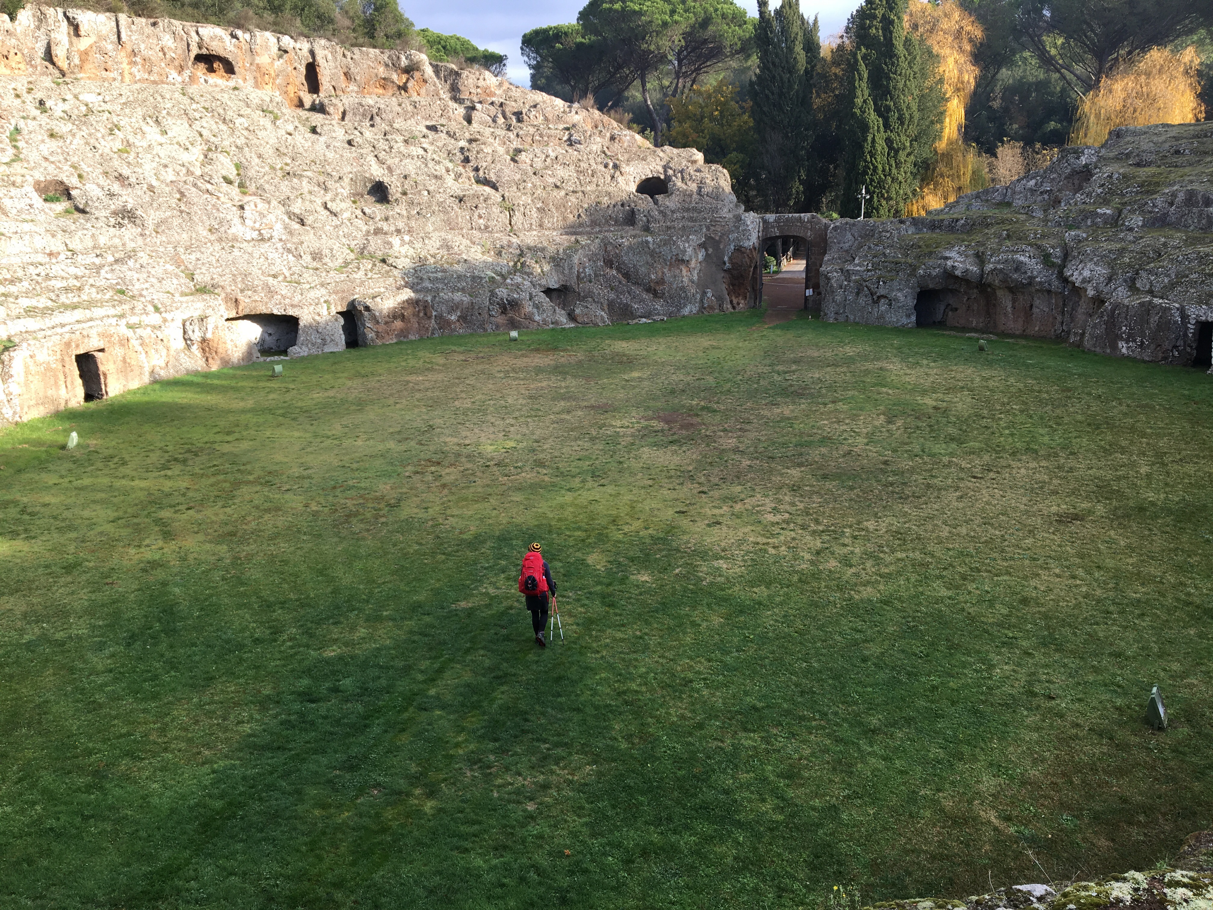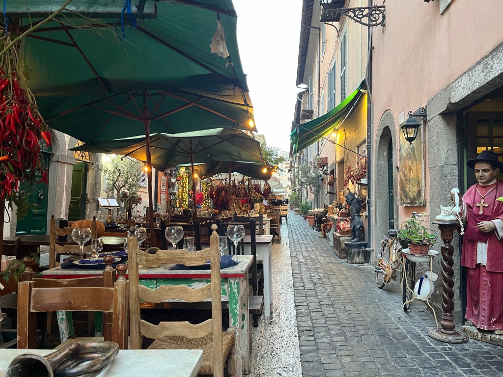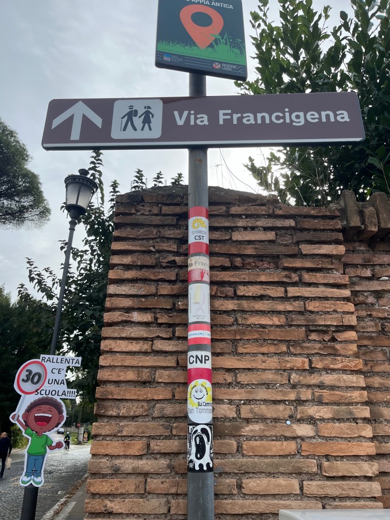 We are starting to get into our pellegrini rhythm now. Arrive at accommodation, have a bit of a rest, change out of our stinky walking clothes, shower and wash out some smalls, then put on the one other outfit, which is hopefully not as stinky, for our evening wear. If we have had an early enough start, then we have a bit of a wander to some sites, or just an evening passeggiata. Sunset now is about 4:45, so the days are getting shorter. Dinner, though, doesn’t happen any earlier, so our tired, hungry bodies have to wait until about 7:30 or even later to seek out dinner.