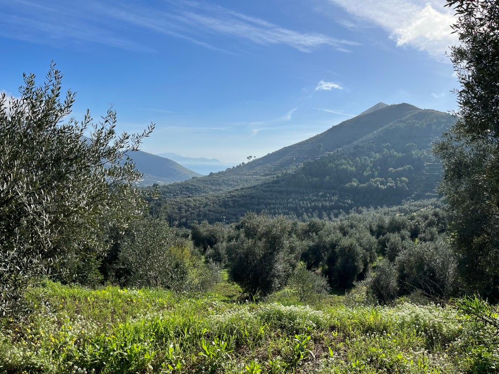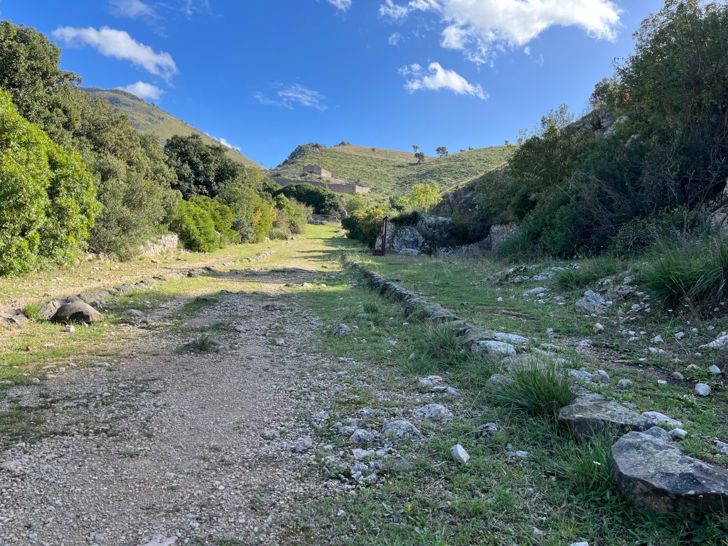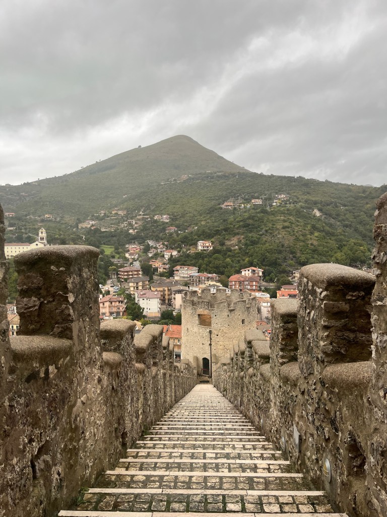This road is another steep climb, and at the top (almost) an older woman in a car waves me over – “Where are you from?” “Australia, you have come from so far away!” Our destination today is Gaeta, and she tells me it is now all downhill. (She wasn’t exactly correct with another small ascent ahead of us).