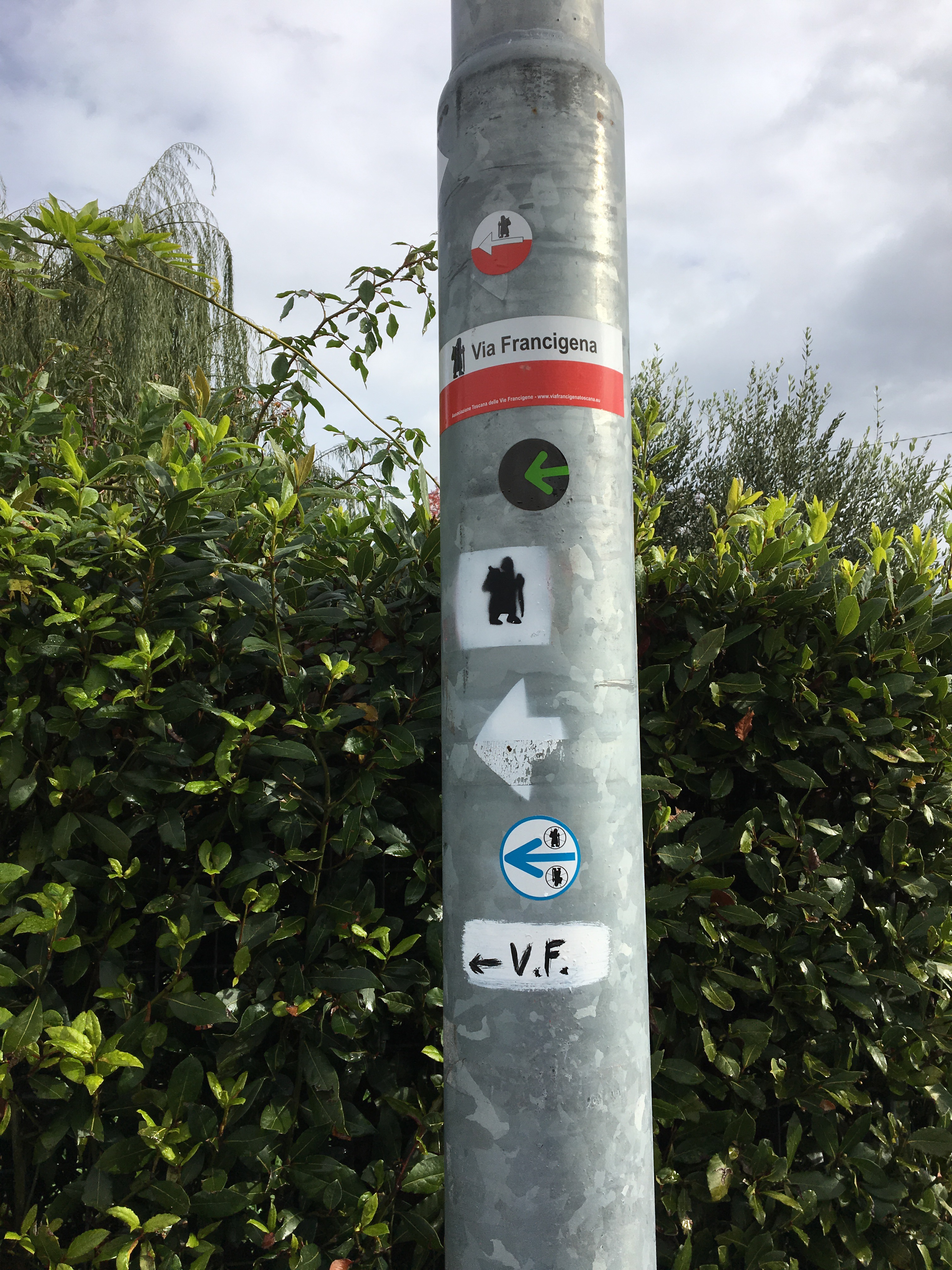 We still have company at times from pellegrino francese and pellegrino danese. Although today it was only a glimpse of pellegrino francese – he is younger, taller and faster. A glimpse and a wave in the distance and he is not seen again for the day.